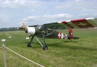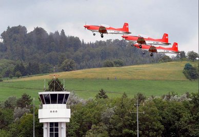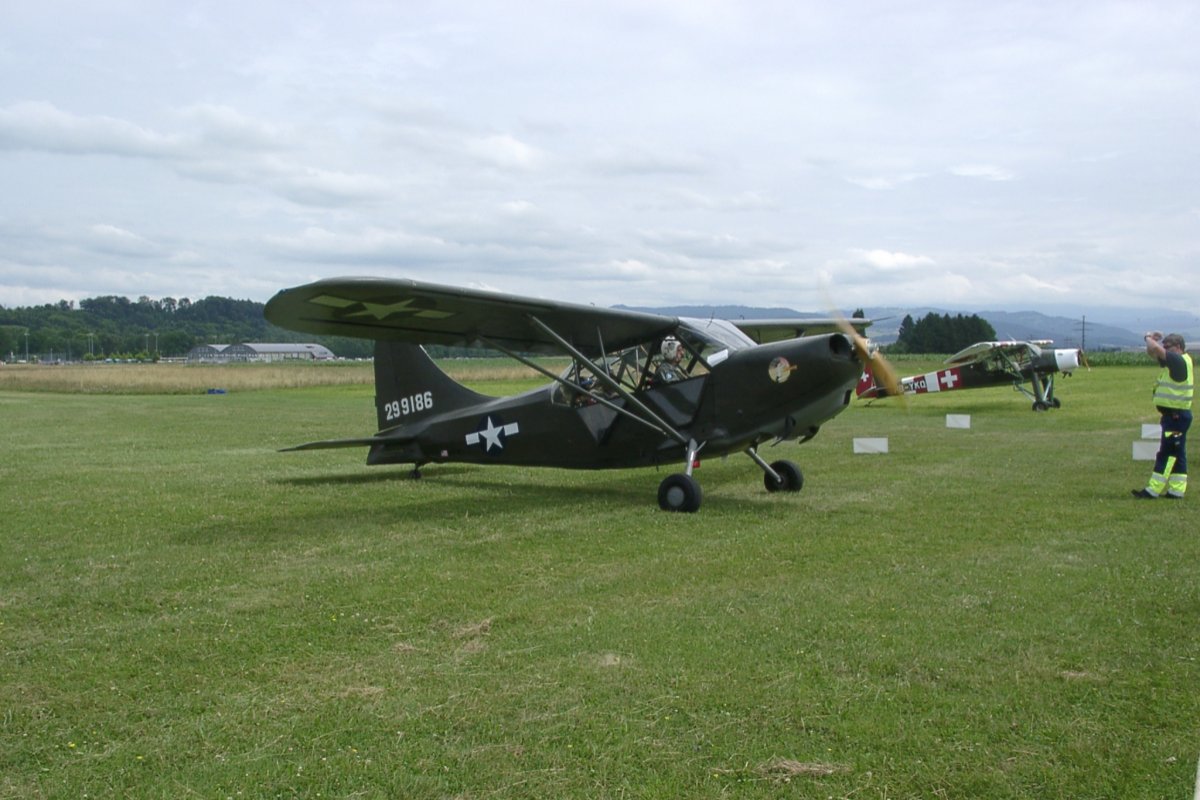 Das Wochenende der Flugshow war sehr verregnet. Links oben der Storch kann bereits mit 45km/h abheben und war daher auch in den Bergen im Einsatz.