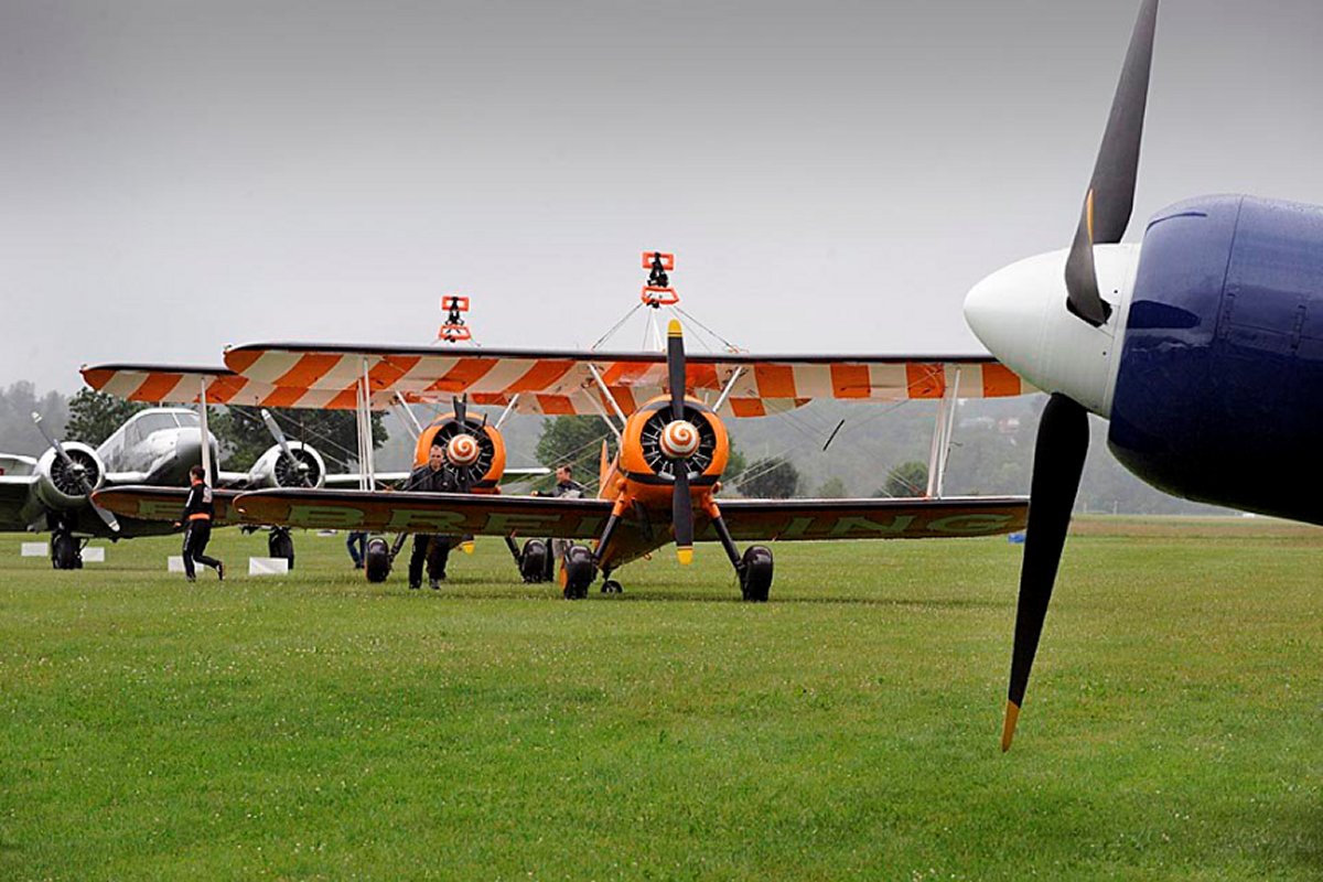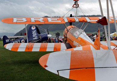 Unten Mitte: Ein Breitling Wingwalker vor der Flugshow. Bild: Franziska Scheidegger
