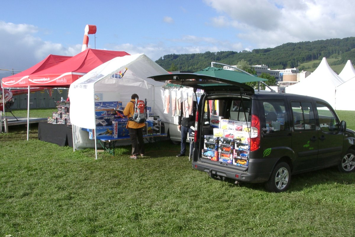 RC-Modellbauprofi-GmbH nimmt als Aussteller am Flugtag Bern-Belp Teil und verkauft RC-Modelle.